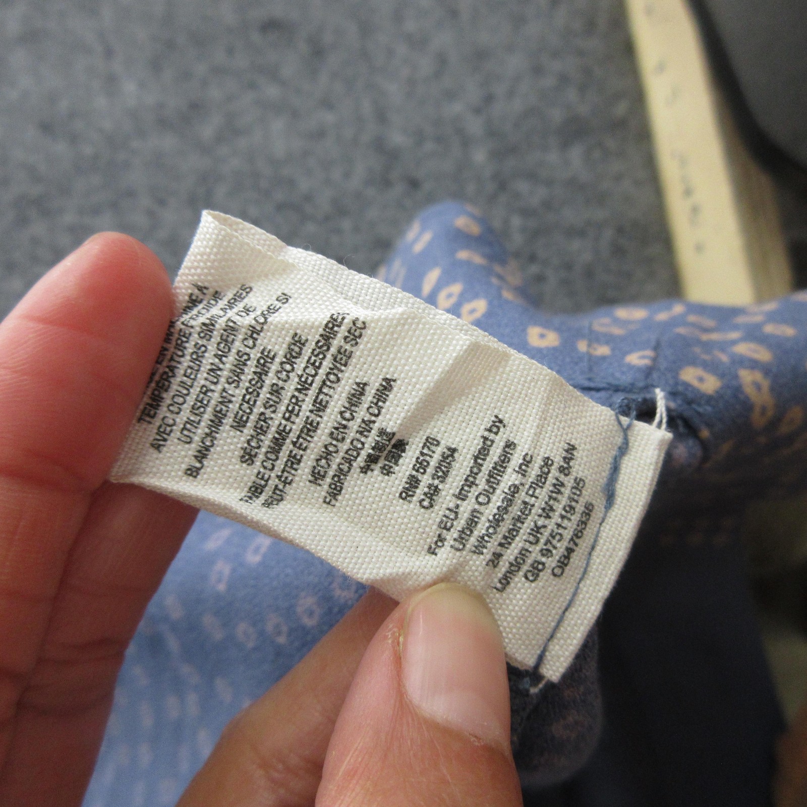 Brand: Free People Style: Womens boho maxi dress with wide bell sleeves and a flowy, relaxed skirt. Color: Dusty blue with an allover tan geometric dot print. Size on tag: 0 Material: Shell 54% viscose, 46% rayon; exclusive of decoration (per care tag). Made in China. Design details: Deep V front with crisscross lace-up detail, tassel neck ties, wide ruched waistband, long dramatic bell sleeves, soft drapey woven fabric. Closure: Back zipper closure with fitted waist and flowing maxi-length skirt.