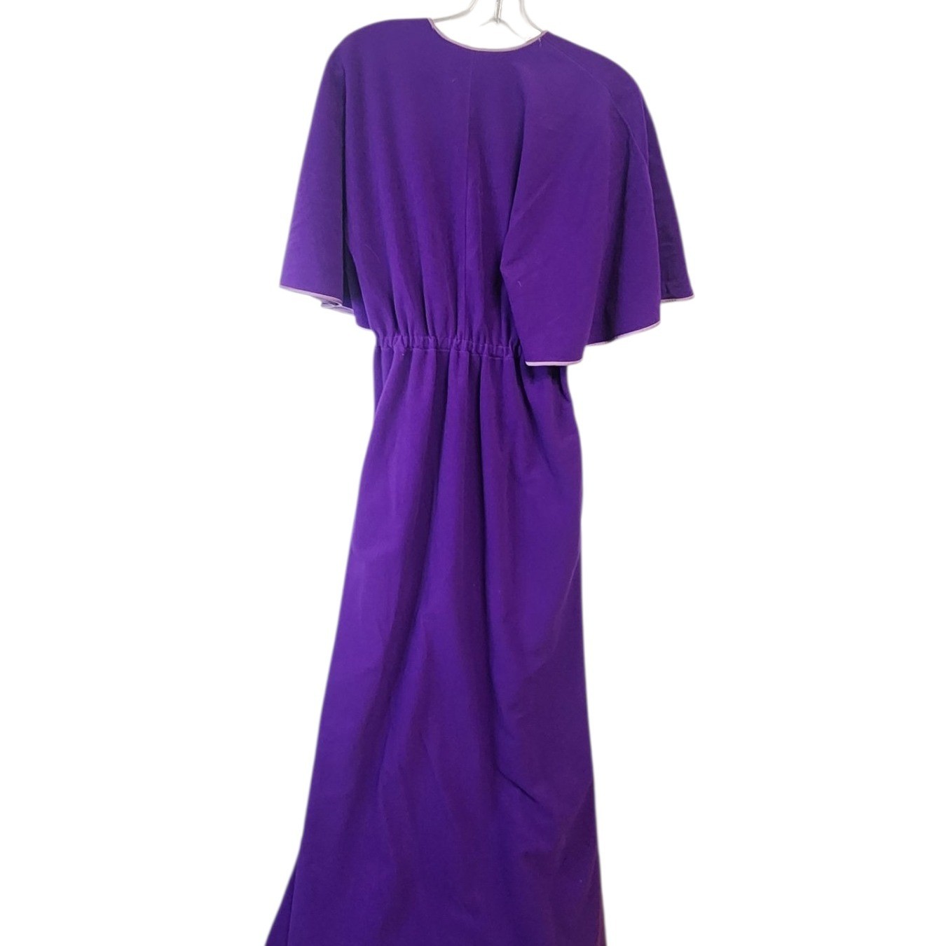 Elegant purple loungewear maxi dress, perfect for relaxation and comfort. Style: Kaftan, Maxi. Dress Length: Long. Occasion: Casual, Party/Cocktail, Travel. Color: Purple. Neckline: Round Neck.