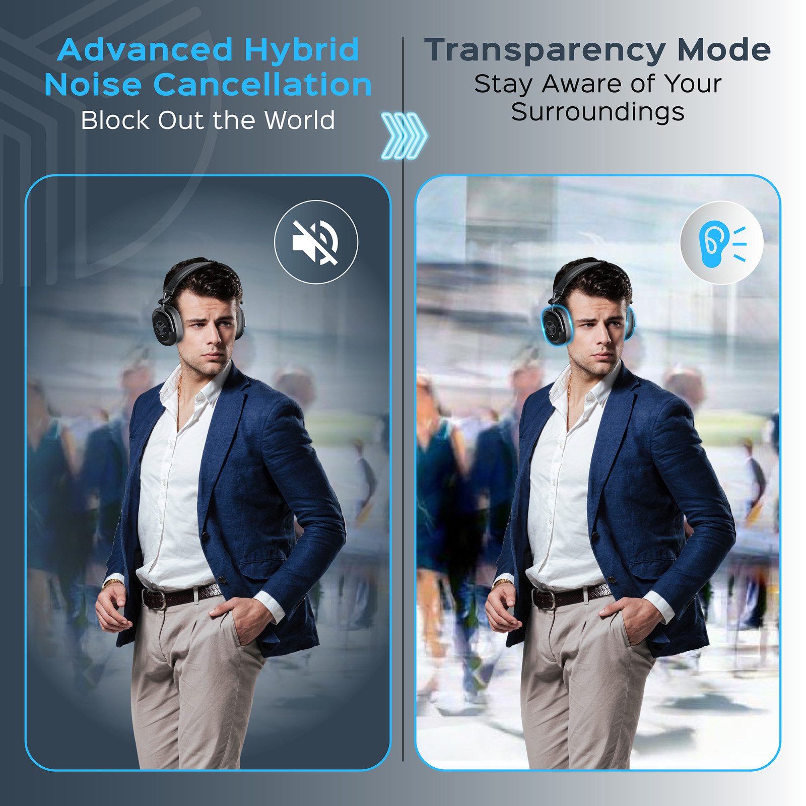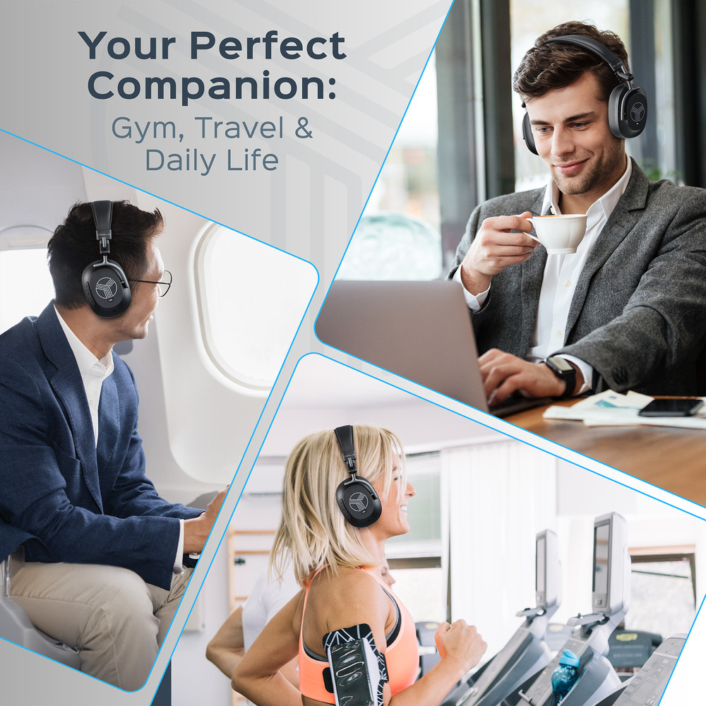 TREBLAB U5 - Hybrid Active Noise Cancelling Headphones Over-Ear 55 Playtime
