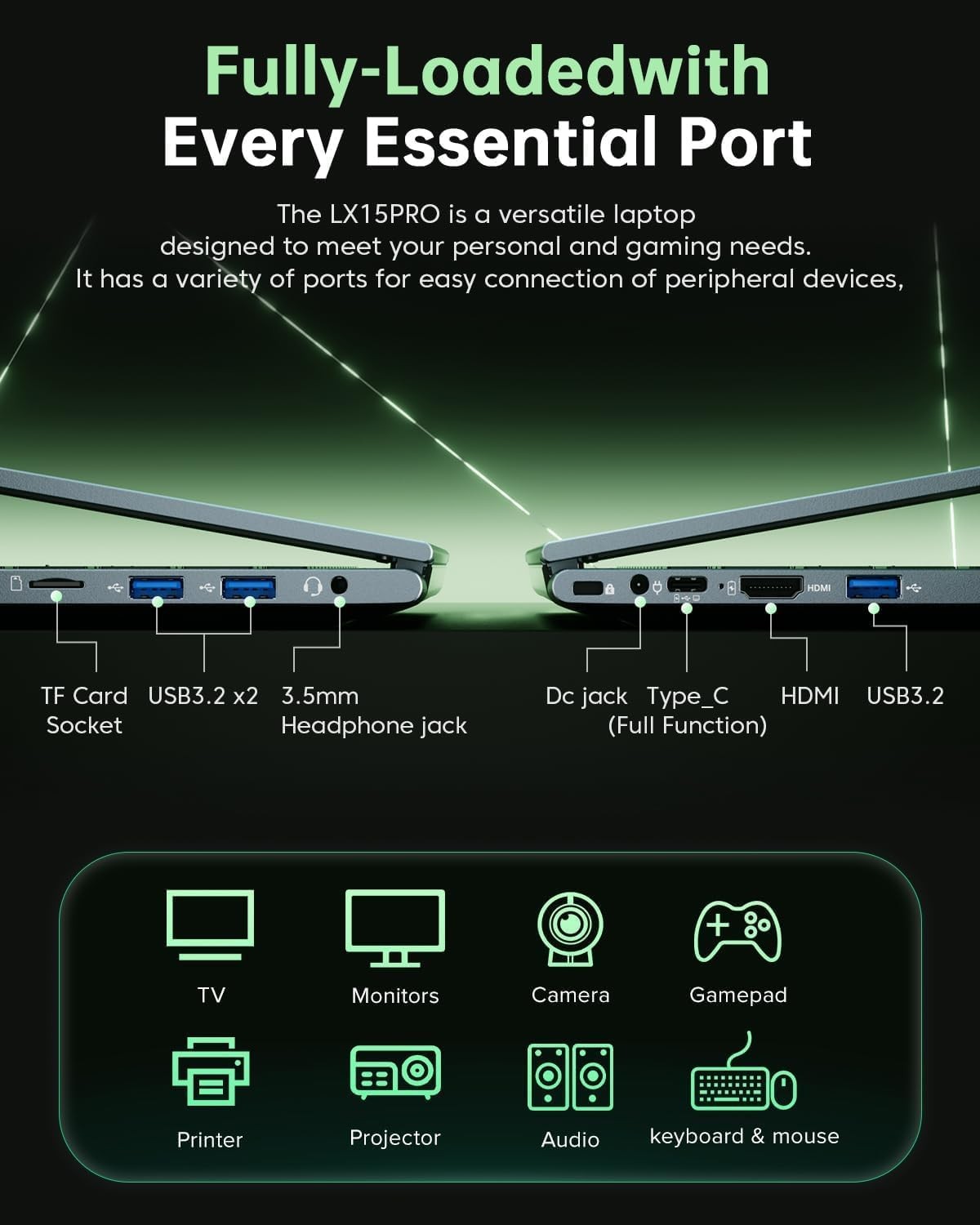 Extensive & Premium Connectivity Designed for ultra-fast performance, the KONZID AMD Ryzen 7 Laptop is equipped with 1 webcam, 2 USB 3.2, 1 HDMI, 1 full-function Type-C, 1 3.5mm audio/microphone jack, 1 TF card slot, and 1 Type-C DC jack.